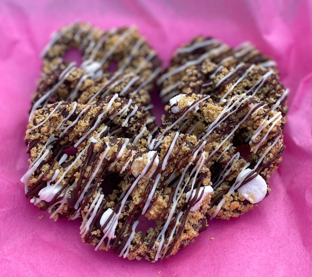 Mini pretzels covered in white or milk chocolate and toppings of your choice. Perfect for yourself or an event!